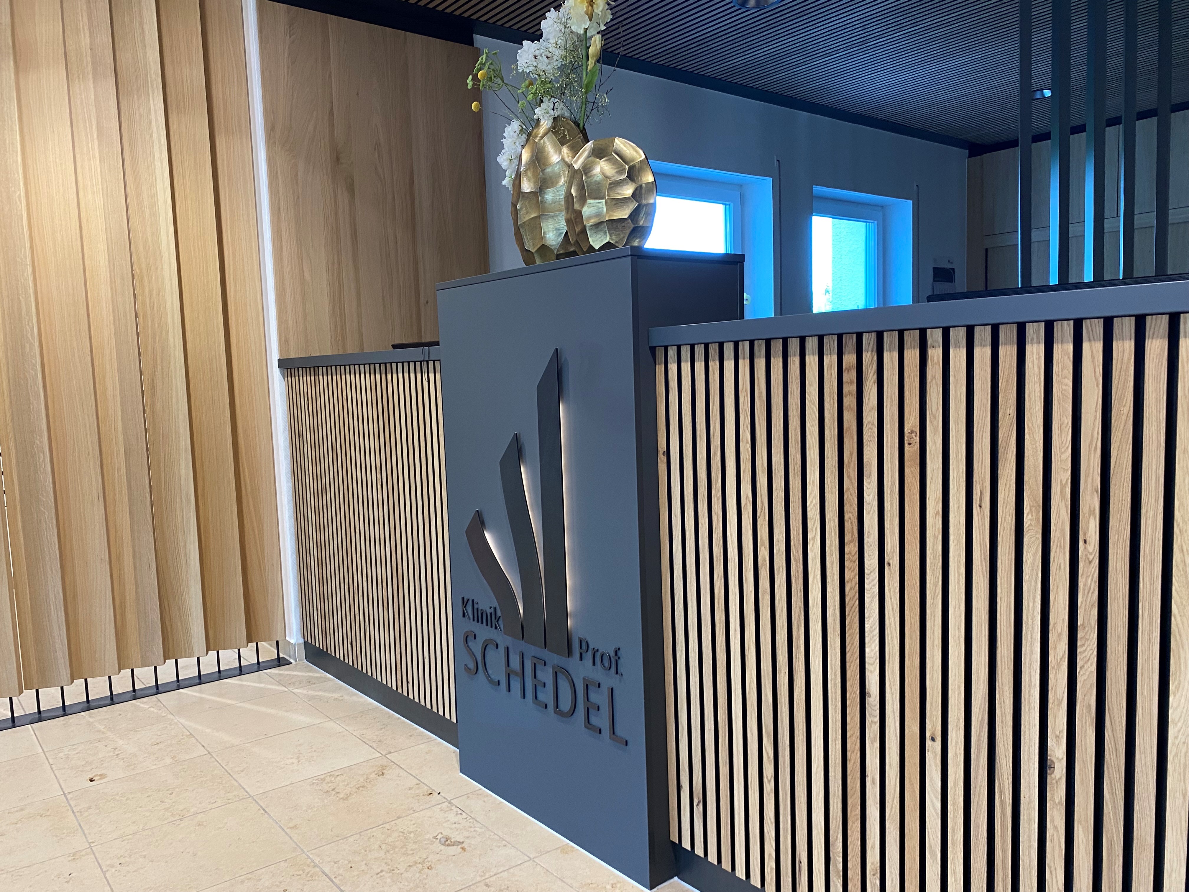 Im Zuge der Renovierung wurde die gesamte Rezeptionsfläche modernisiert und den aktuellen Anforderungen angepasst. Der Empfangsbereich präsentiert sich nun in einem zeitgemäßen und einladenden Design. Die Möbel wurden erneuert und sorgen für eine angenehme Atmosphäre, in der sich unsere Patienten und Besucher willkommen fühlen können.